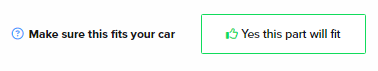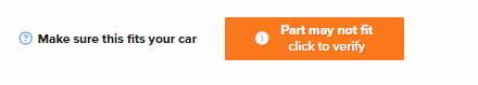 The first is the "fitment indicator" shown on the Product Page after selecting a part. This box is below the "add to cart button" and has two states. It will either say " Yes this part fits" or "Part may not fit, click to verify".